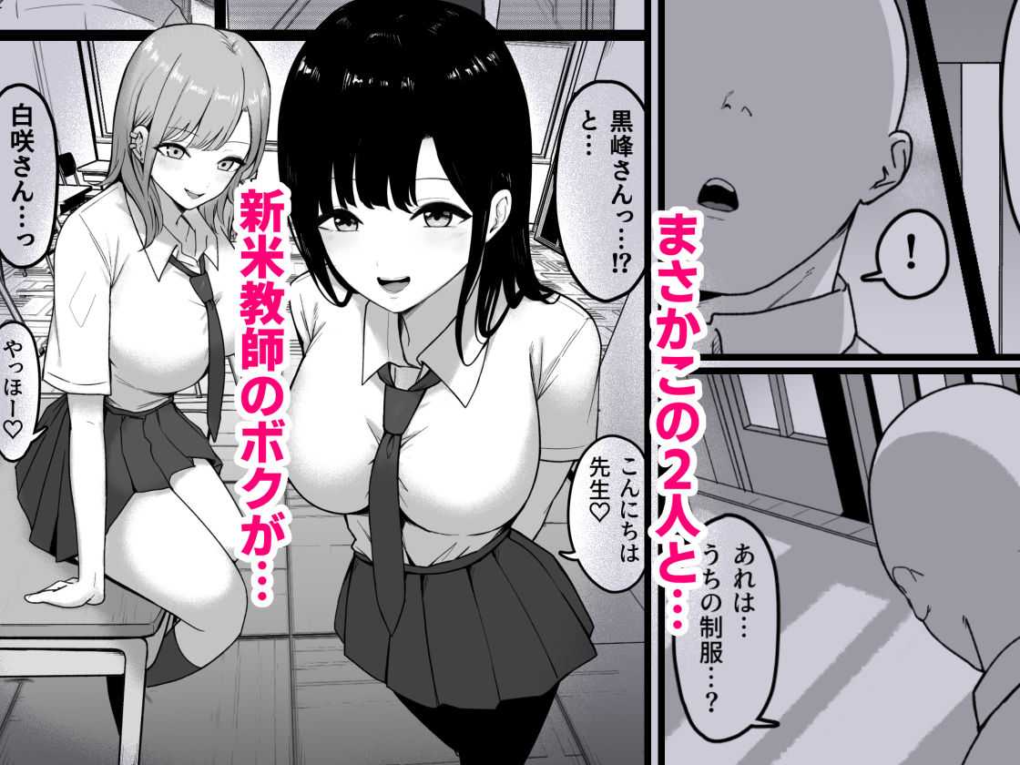 学校にいる爆乳美女二人と秘密を共有して、朝までアヘりまくるダメ教師のマネキン男。淫乱学生に誘惑される分かりやすい設定ですが、パイズリ挟射は白咲カレンの描写のみ。黒峰香織がチンポ咥えた時のブス顔と虚な白目がシコい。表紙以上にチンポに効く絵は少ないかもしれません。